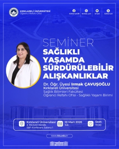 | SAĞLIKLI YAŞAMDA SÜRDÜRÜLEBİLİR ALIŞKANLIKLAR SEMİNERİ Öğrenci Refahı Ofisi 06/03/2026 100 Okunma |