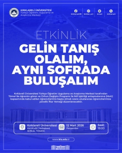 | ÜNİVERSİTEMİZDE “GELİN TANIŞ OLALIM, AYNI SOFRADA BULUŞALIM” ETKİNLİĞİ DÜZENLENECEKTİR 09/03/2026 33 Okunma |