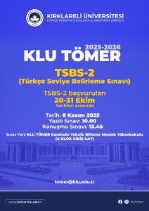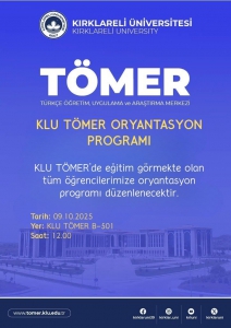 | 2025-2026 EĞİTİM-ÖĞRETİM YILI KLU TÖMER 1. KUR KAYITLARI DEVAM EDİYOR! 25/09/2025 43 Okunma |