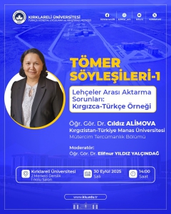 | TÖMER SÖYLEŞİLERİ-1: "LEHÇELER ARASI AKTARMA SORUNLARI: KIRGIZCA-TÜRKÇE ÖRNEĞİ" BAŞLIKLI... 30/09/2025 31 Okunma |