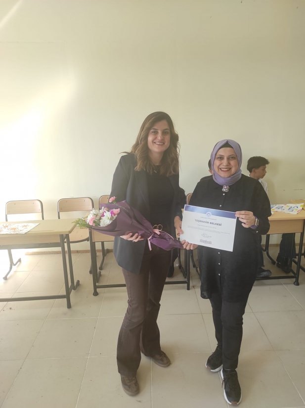 At the conclusion of the event, TÖMER Director Assoc. Prof. Dr. Ayşe Şener presented a certificate of appreciation to Clinical Psychologist Çağrı Yalçın Çınar.