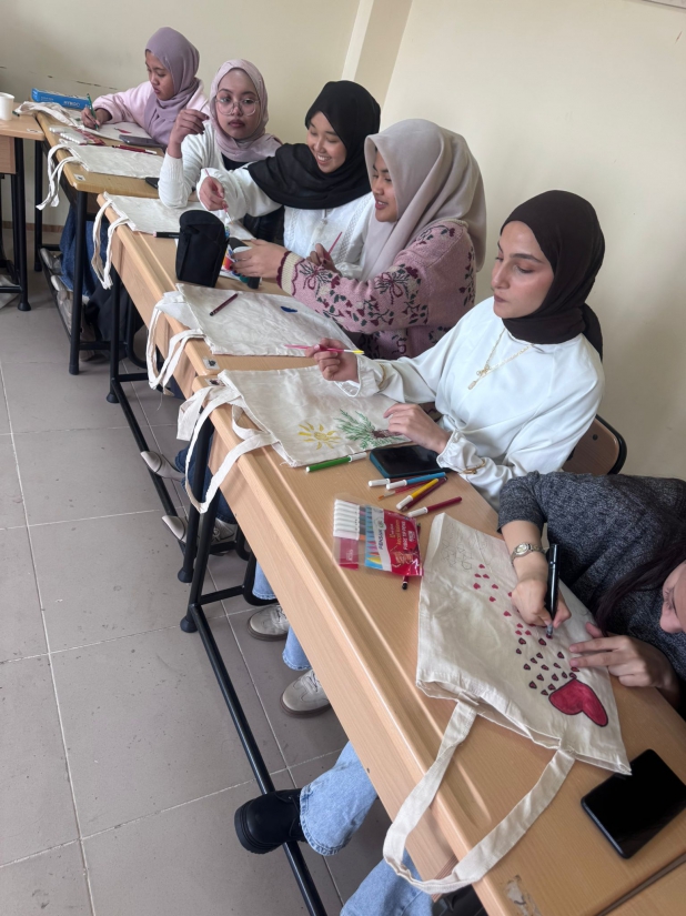 Üniversitemiz Türkçe Öğretim, Uygulama ve Araştırma Merkezi (TÖMER) ile Öğrenci Refah Ofisi iş birliğinde, uluslararası öğrencilere yönelik “Sanatla Öz Şefkat: Çanta Boyama Atölyesi” başlıklı etkinlik düzenlendi.